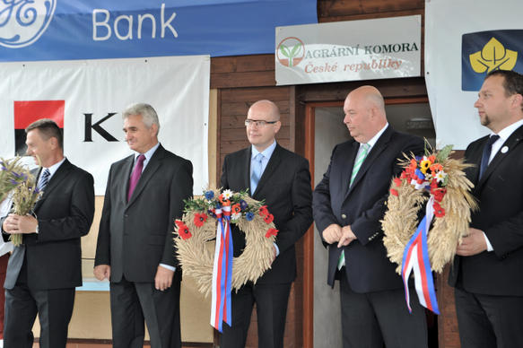 Vážení vzácní hosté, dámy a pánové, vážení zemědělci, vážení potravináři, chtěl bych poděkovat za pozvání na dnešní Národní dožínky sem do Českých Budějovic. Jsem především rád, že ČR má dnes vládu, která se snaží zemědělcům pomáhat, a doufám, že má vládu, která zemědělcům neškodí a zemědělcům také škodit v příštích letech nebude. Vláda je tady sedm měsíců, ale podařilo se nám udělat celou řadu opatření, kterými se snažíme české zemědělství podpořit. Asi víte, že se vracíme k zelené naftě, což byla velmi tradiční forma podpory, schválili jsme operační program pro rozvoj venkova v příštích letech. Doufám, že využijeme peníze z Evropské unie k tomu, abychom podpořili zejména produkční zemědělství v Čechách a také na Moravě.