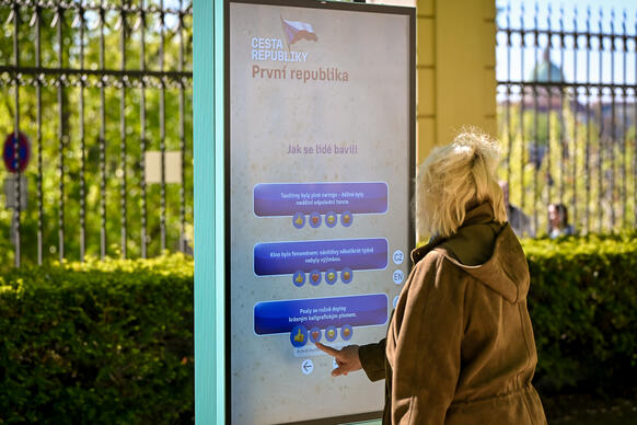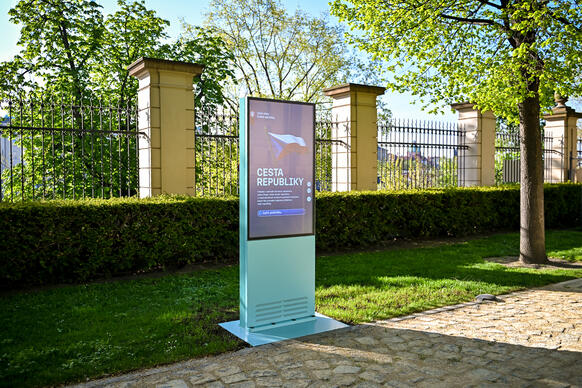 Expozice „Cesta republiky“ umístěná přímo v zahradě Strakovy akademie nabízí přehled vývoje republiky od roku 1918 až po současnost.