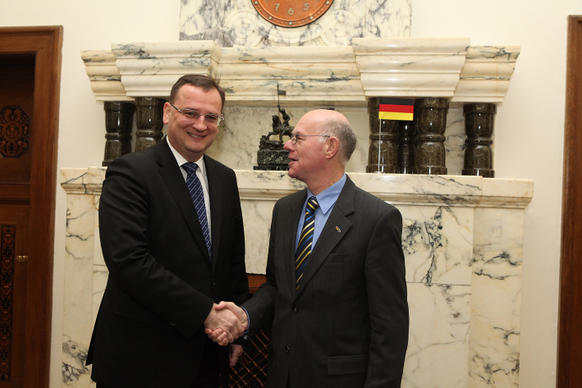 O evropských otázkách, ekonomických vztazích a energetice jednali český premiér Petr Nečas a předseda Spolkového sněmu SRN Norbert Lammert.