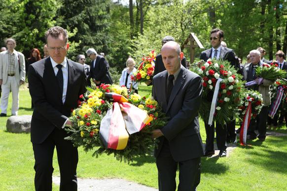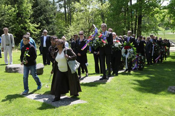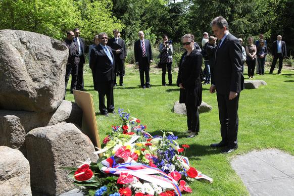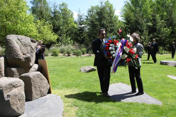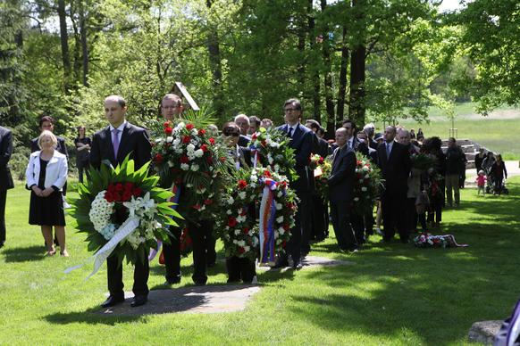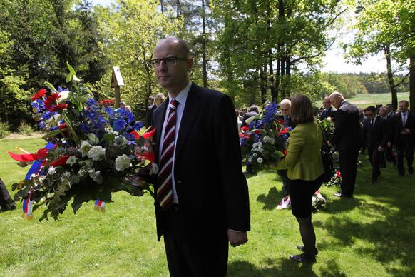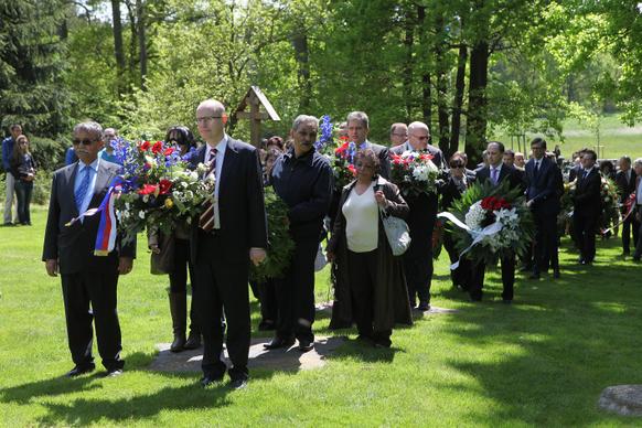 Předseda české vlády Bohuslav Sobotka, ministr kultury Daniel Herman a ministr pro lidská práva, rovné příležitosti a legislativu Jiří Dienstbier uctili v sobotu 10. května 2014 v Letech u Písku památku romských obětí holocaustu.