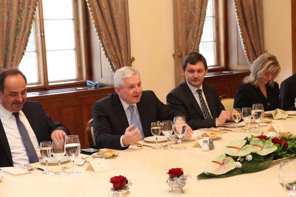 Po podpisu dohody spolu ještě český a slovenský premiér jednali na pracovním obědě.