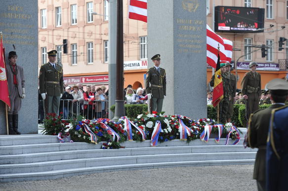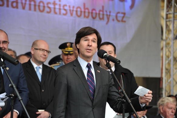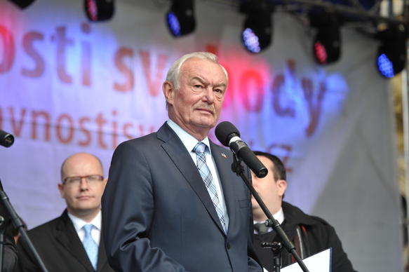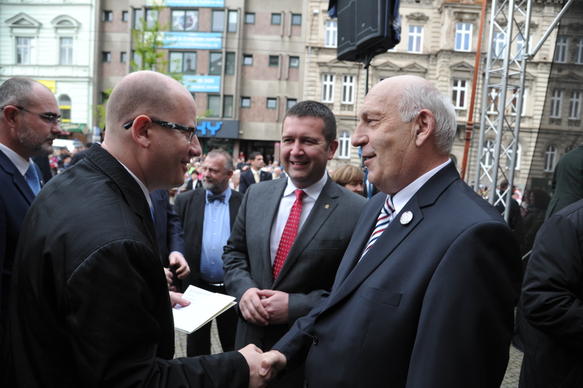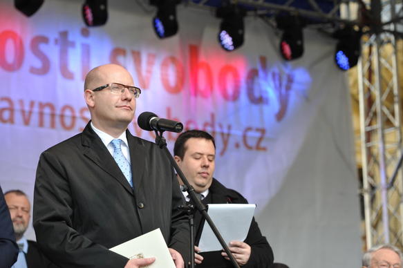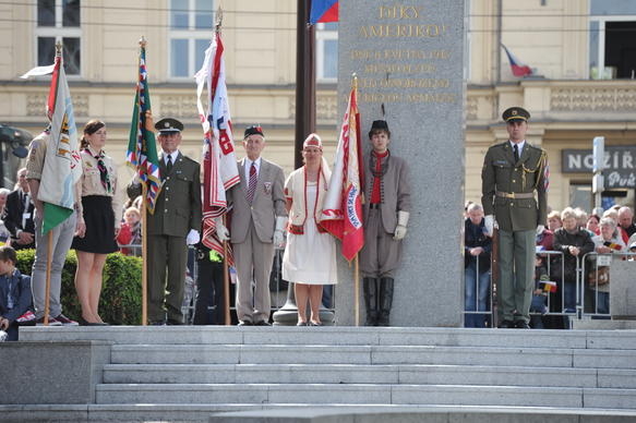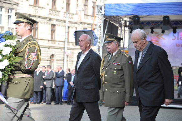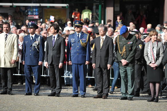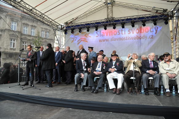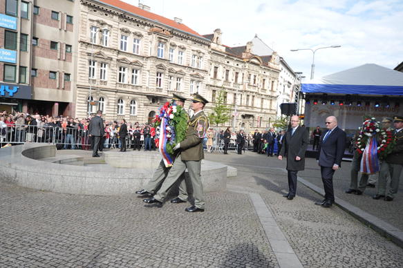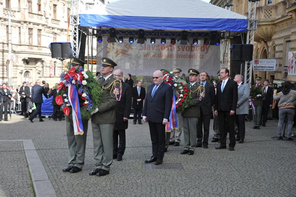 Předseda vlády Sobotka ve svém projevu poděkoval všem, kteří bojovali v roce 1945 za svobodu českého národa, a připomněl oběti těch, kteří zemřeli, ať už v boji, nebo v koncentračních táborech. Dodal, že se lidstvo snad poučilo z chyb, které vedly ke dvěma světovým válkám, a mělo by využít uskupení jako je Evropská unie nebo NATO k hájení demokratických hodnot.