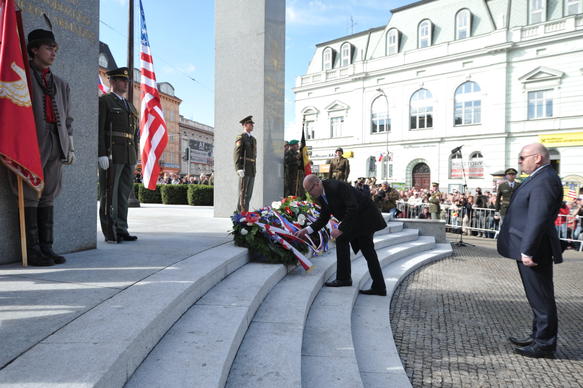 Předseda vlády Bohuslav Sobotka ve středu 6. května 2015 vystoupil na vzpomínkovém aktu Díky Ameriko k 70. výročí osvobození města Plzně. Pietní ceremonie na Americké třídě v Plzni se zúčastnili také ministr obrany Martin Stropnický, ministr vnitra Milan Chovanec, ministr kultury Daniel Herman, předseda Poslanecké sněmovny Jan Hamáček a další významní hosté.