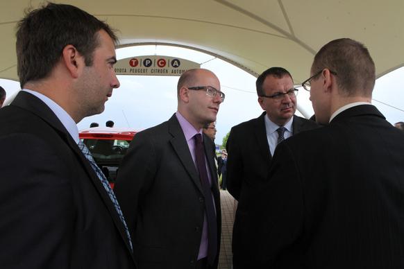 Automobilku TPCA navštívili spolu s předsedou vlády Bohuslavem Sobotkou také ministryně práce a sociálních věcí Michaela Marksová a ministr průmyslu a obchodu Jan Mládek.