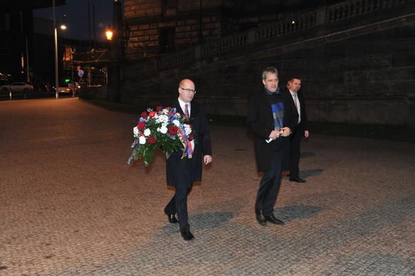 Předseda vlády Bohuslav Sobotka a ministr pro lidská práva, rovné příležitosti a legislativu Jiří Dienstbier symbolicky uctí památku Jana Palacha, studenta filozofické fakulty Jana Palacha, který se před 46 lety upálil na protest proti sovětské okupaci, položením kytice a zapálením svíčky u Pomníku Jana Palacha a Jana Zajíce na Václavském náměstí.