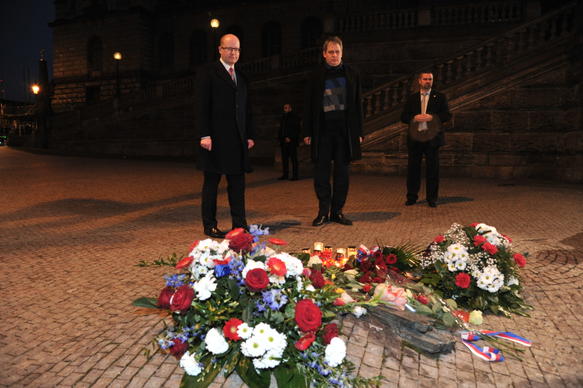 Předseda vlády Bohuslav Sobotka a ministr Dienstbier uctili památku Jana Palacha na Václavském náměstí