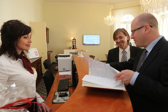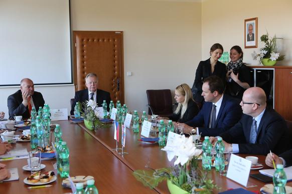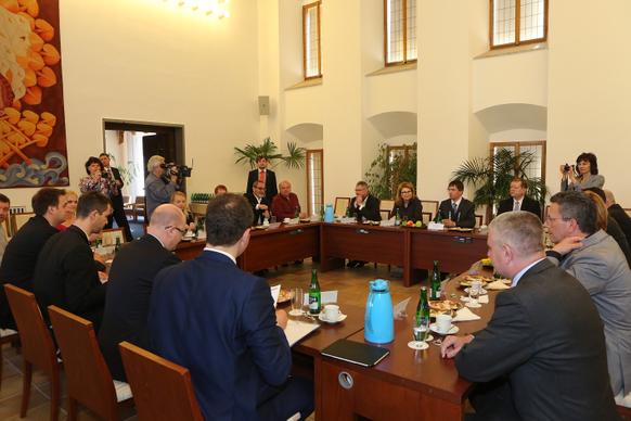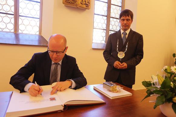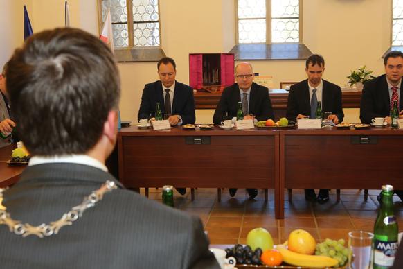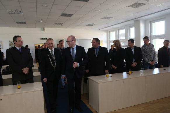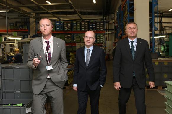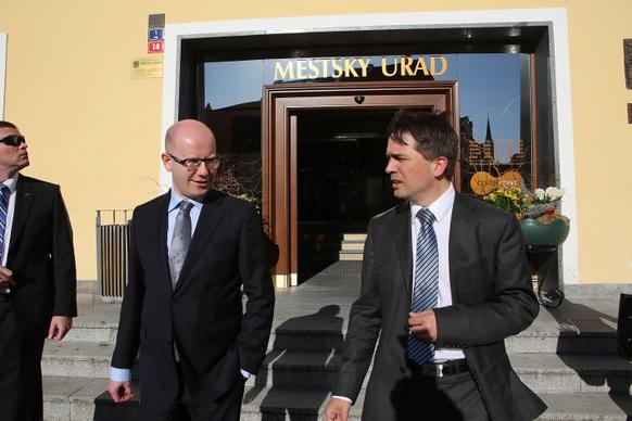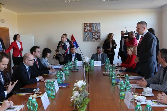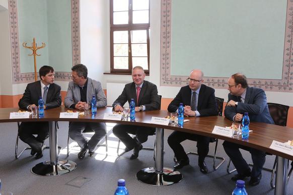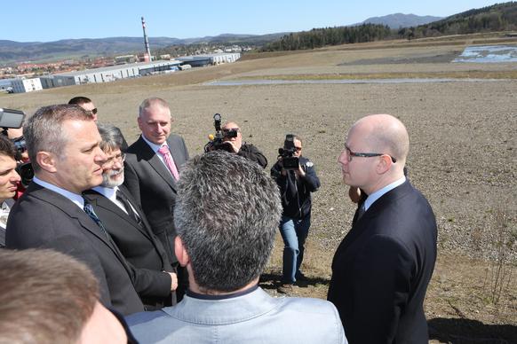 Odpoledne premiér Sobotka jednal s vedením společnosti Sokolovská uhelná a ještě se setká se zástupci města Chebu a navštíví místo plánované výstavby pokračování rychlostní silnice R6 do Německa.