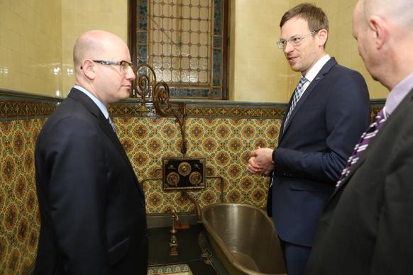 V Karlových Varech předseda vlády navštívil historickou budovu Císařských lázní a Lázně III. Zde připomněl, že se Karlovarský kraj potýká s výrazným propadem zahraničních klientů, který je ovlivněn zejména krizí na Ukrajině, což má dále vliv nejen na sektor lázeňství.