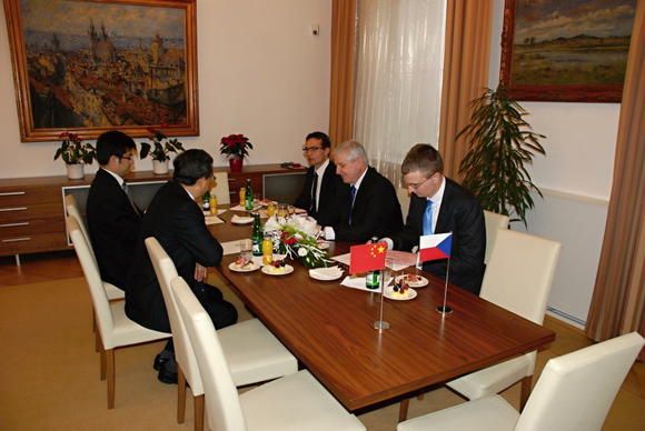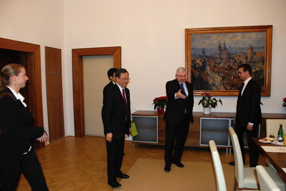 Premiér Jiří Rusnok přijal 12. prosince 2013 ve Strakově akademii velvyslance Čínské lidové republiky pana Yu Qingtai. Setkání se uskutečnilo při příležitosti ukončení mise pana velvyslance.