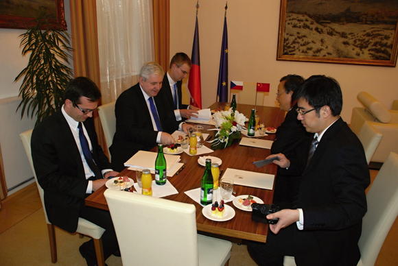 Předseda vlády poděkoval čínskému velvyslanci za jeho práci, která přispěla k posílení vzájemných vztahů obou zemí. „Nevidím ve vzájemných vztazích žádné problémy, ale pouze plány do budoucna. Musíme jen pokračovat v tom, co jsme naplánovali, a přivést tyto plány k životu,“ řekl Jiří Rusnok.