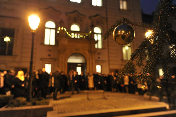 Předseda vlády společně s vedoucím Úřadu rozsvítili vánoční strom a poděkovali zaměstnancům