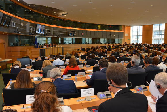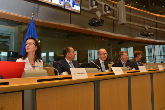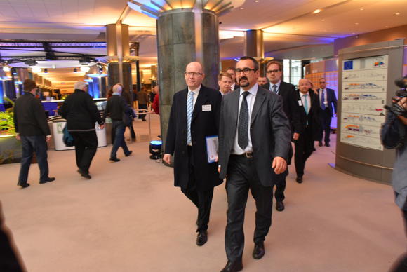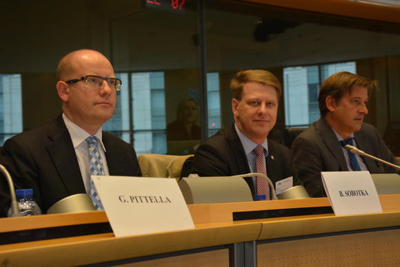 Na úvod své pracovní návštěvy přednesl předseda vlády v Evropském parlamentu projev před Frakcí socialistů a demokratů. Ve své řeči o soudržné, jednotné a akceschopné Evropě se věnoval současnému stavu Evropské unie, a to především ve světle migrační krize. V projevu se premiér věnoval také sociální dimenzi EU a postavení osmadvacítky ve světě.