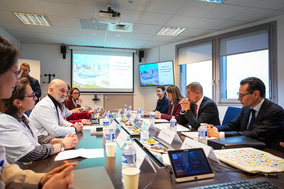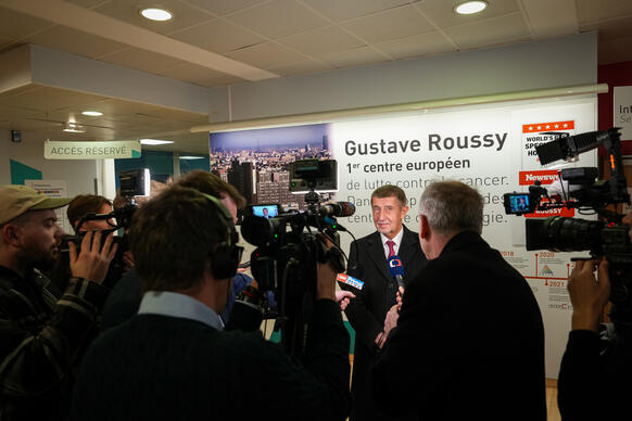 Předseda vlády odpoledne také navštívil onkologické centrum Gustave Roussy, které patří mezi přední evropská centra pro výzkum a léčbu rakoviny i výuku onkologie. Předseda vlády jednal s vedením ústavu o posílení spolupráce s českými nemocnicemi a prohlédl si rovněž nejmodernější screeningové přístroje.