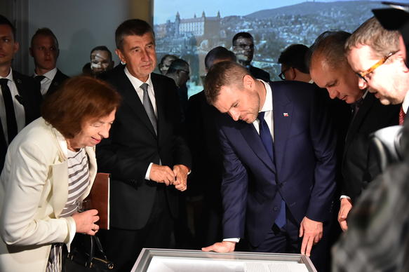 Předseda vlády Andrej Babiš se ve čtvrtek 26. dubna 2018 zúčastnil slavnostního zahájení Česko-slovenské a Slovensko-české výstavy, které se konalo na Bratislavském hradě.