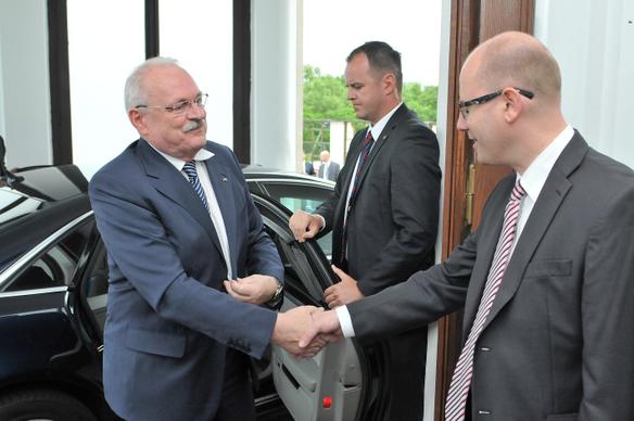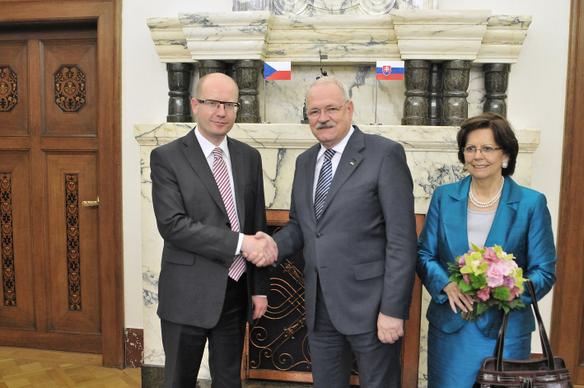 Předseda vlády České republiky Bohuslav Sobotka se dnes 28. května setkal s prezidentem Slovenské republiky Ivanem Gašparovičem, který zavítal na svou poslední státnickou návštěvu do České republiky před červnovým odchodem z funkce.