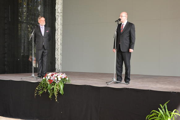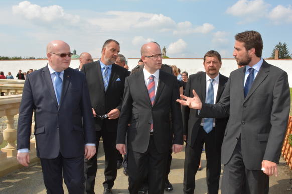 Předseda vlády ČR Bohuslav Sobotka se 6. září 2014 v rámci svých pravidelných pracovních cest do regionů zúčastnil otevření Květné zahrady v Kroměříži.