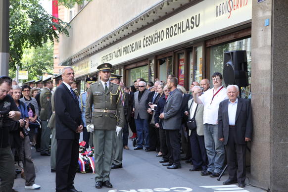 Předseda vlády Jiří Rusnok se dnes zúčastnil pietního aktu u Českého rozhlasu k 45. výročí srpnové invaze do Československa.