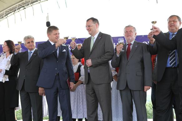"Je to silný symbol toho, jak kvalitně se v posledních dvaceti letech vyvíjí česko-slovenské vztahy," prohlásil v úvodu zdravice premiér Petr Nečas. "Slováci jsou pro Čechy nejbližším národem, skutečně bratrským národem. Národem, na který se vždy velmi spoléháme a i na mezinárodní úrovni víme, že se můžeme o ně opřít," uvedl Petr Nečas.