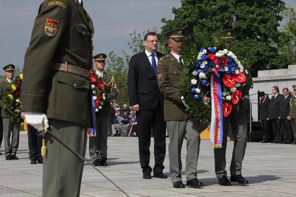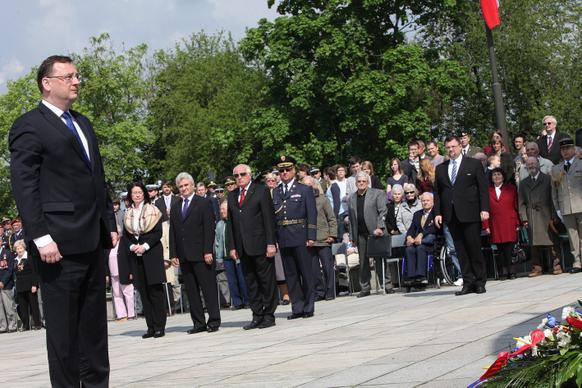 Premiér Petr Nečas se dnes zúčastnil oslav 67. výročí konce druhé světové války. Pietní akt se konal u Národního památníku v Praze na Vítkově.