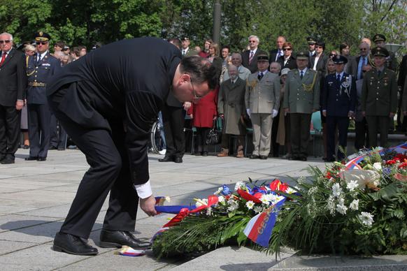 „Je to také připomenutí si obětí, protože statisíce občanů tehdejšího Československa položilo život během druhé světové války,“ zdůraznil po pokládání věnců ministerský předseda.