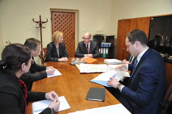 Předseda vlády Bohuslav Sobotka na jedné ze svých prvních cest do krajů v letošním roce zavítal na Hodonínsko. Na jednání se starostkou Hodonína Milanou Grauovou řešil například otázku sociálního bydlení, se starostkou Moravského Písku Hanou Habartovou jednal např. o silniční dopravě.