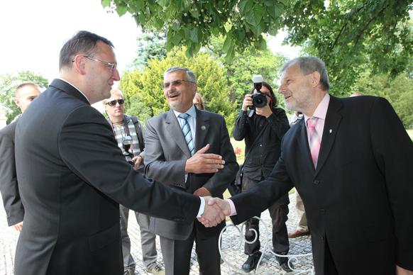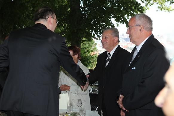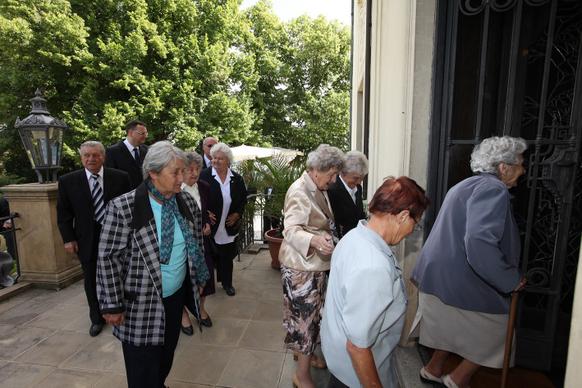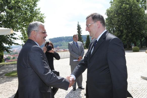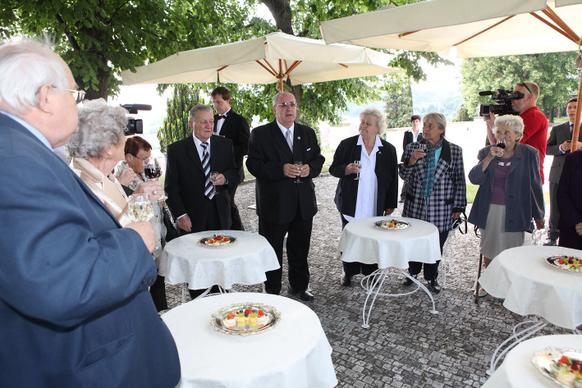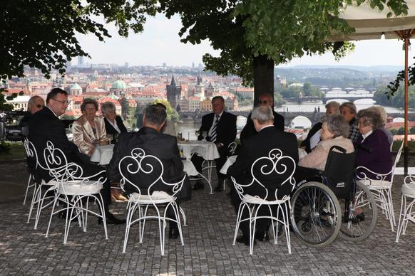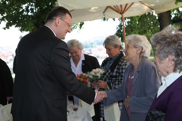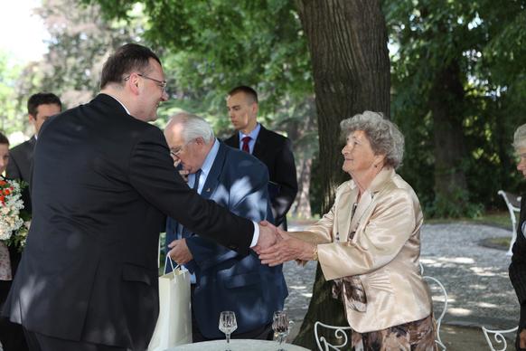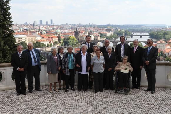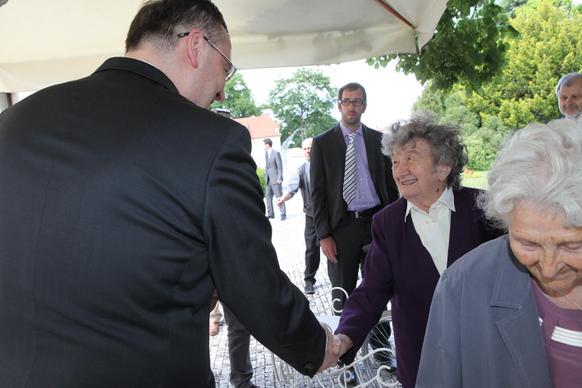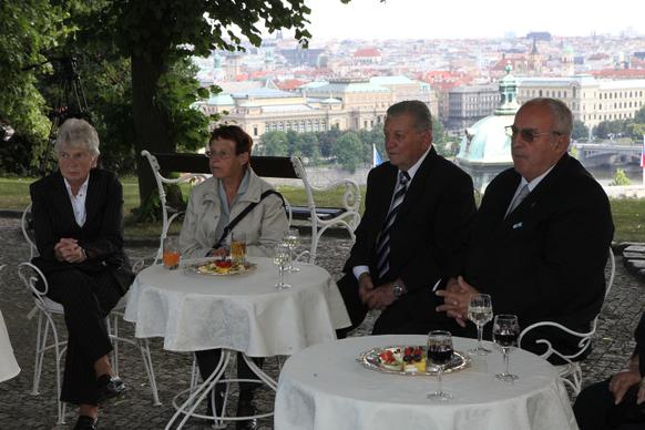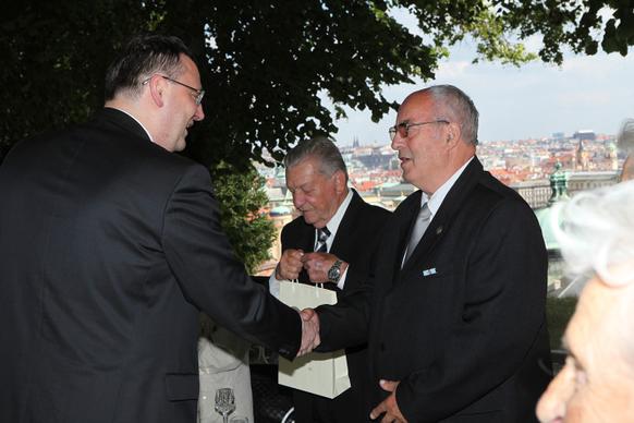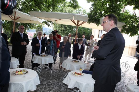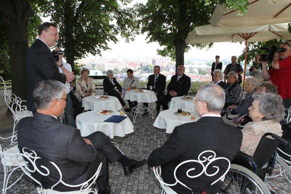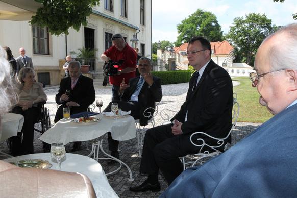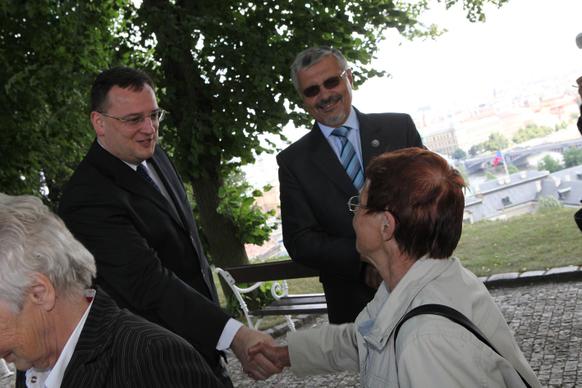 Petr Nečas přivítal na zahradě Kramářovy vily přeživší pamětníky vůbec jako první český premiér. „Je to pro mne čest, vaše životní osudy nesmíme zapomínat, musíme si připomenout, že osud Lidic a Ležáků je něco, co by mělo být mementem,“ řekl ministerský předseda.