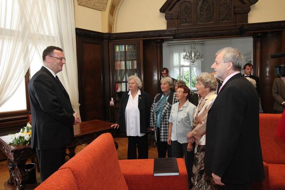 Pamětníci lidických a ležáckých událostí se dnes setkali s předsedou vlády Petrem Nečasem.