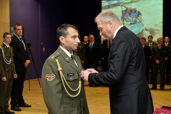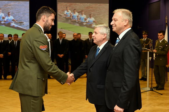 „Děkuji vám také proto, že jste skvělým příkladem pro mladou generaci, příkladem toho, že když někdo hodně a usilovně pracuje, tak dokáže mnoho,“ dodal předseda vlády. Děkovné listy ministra obrany a blahopřání předsedy vlády přijalo také 31 trenérů, mezi nimi například Jan Železný.