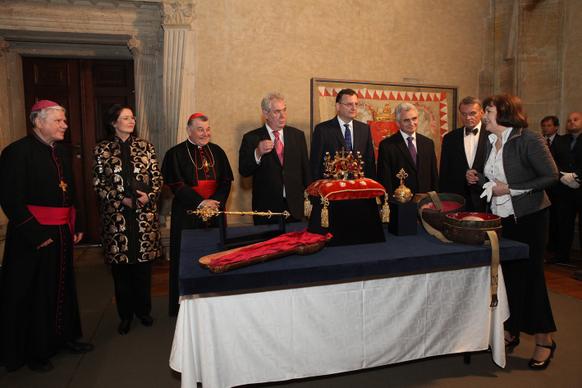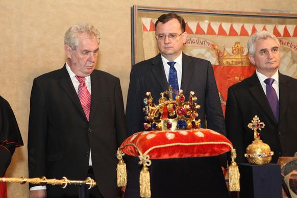 Předseda vlády Petr Nečas se dnes na Pražském hradě zúčastnil slavnostního vyzvednutí českých korunovačních klenotů.