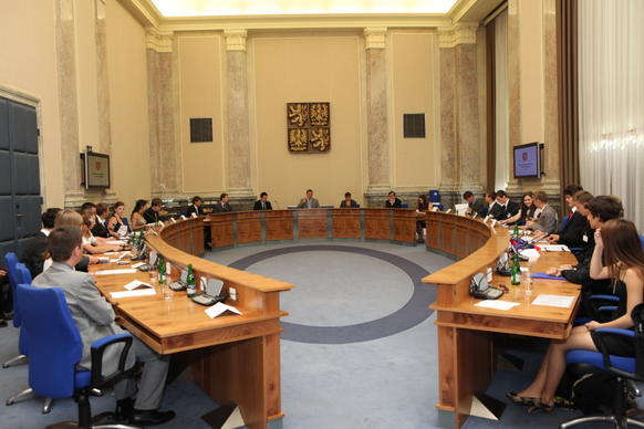 Následně si vyzkoušeli jej obhájit a prosadit při simulovaném zasedání vlády v sídle Úřadu vlády ČR.