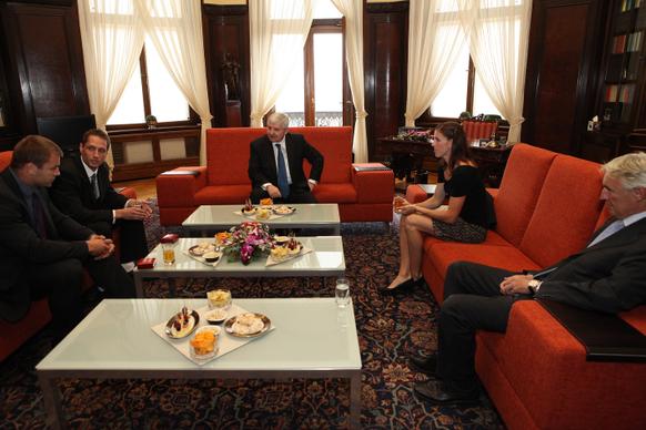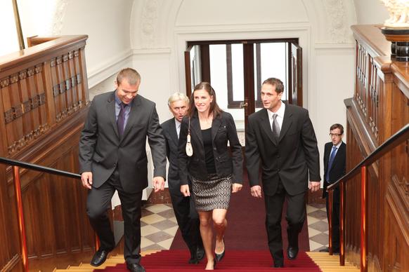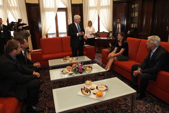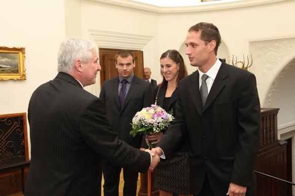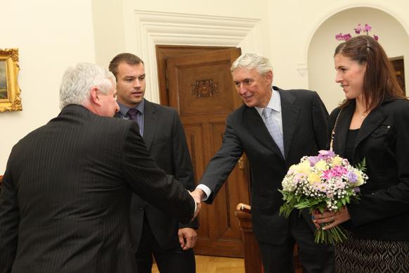 Premiér Jiří Rusnok přijal úspěšné české medailisty Zuzanu Hejnovou, Vítězslava Veselého a Lukáše Melicha.