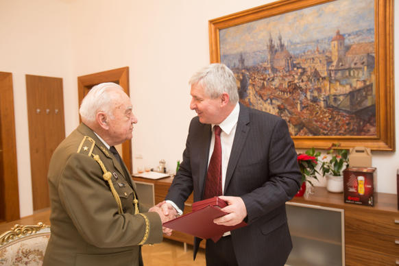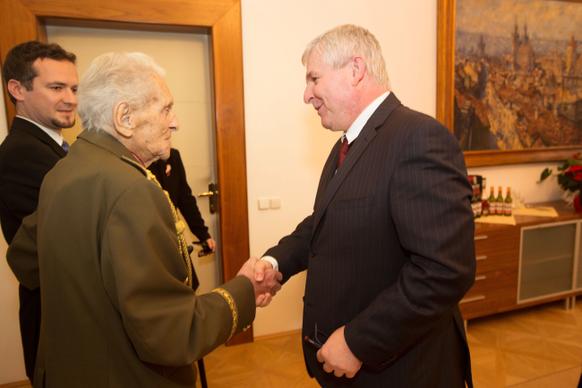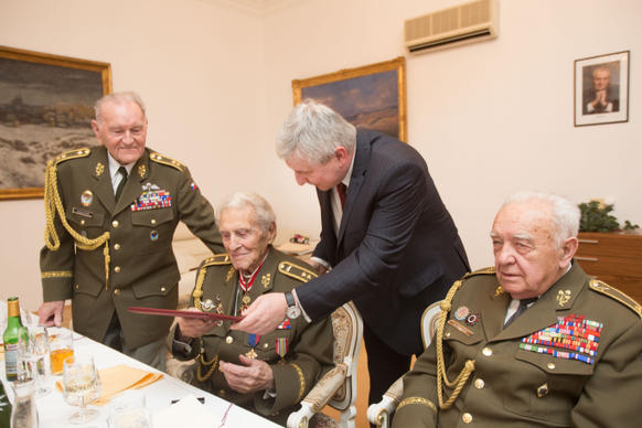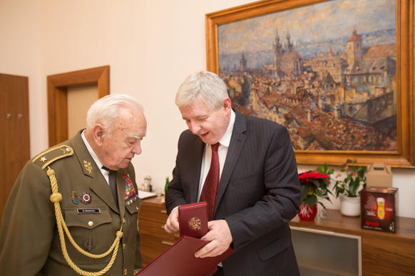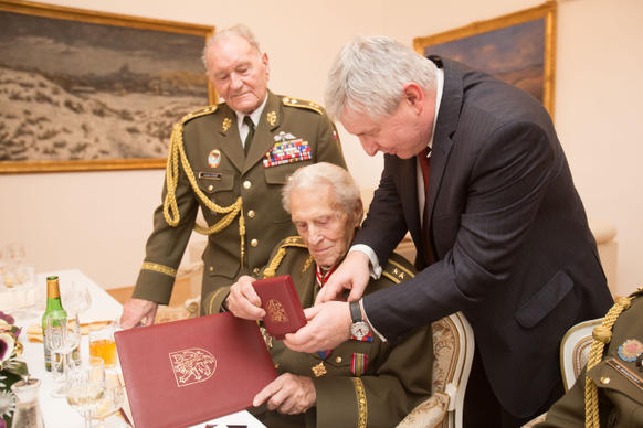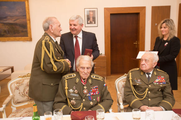 Jiří Rusnok se setkal s válečnými hrdiny již před měsícem při příležitosti Dne válečných veteránů, kdy je přijal v Hrzánském paláci a udělil jim čestnou medaili Karla Kramáře.