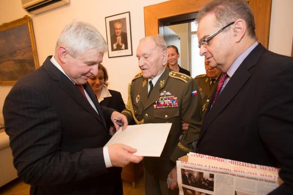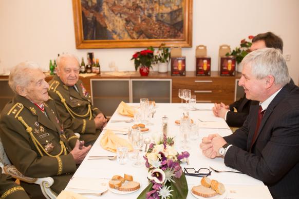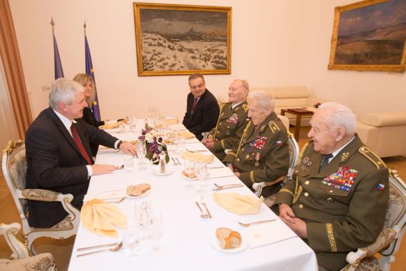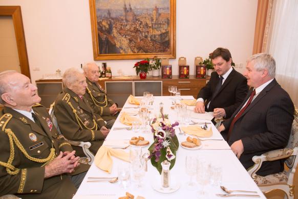 Předseda vlády Jiří Rusnok přijal 13. prosince ve Strakově akademii veterány druhé světové války. V předvánočním čase pozval premiér válečné hrdiny na neformální oběd.