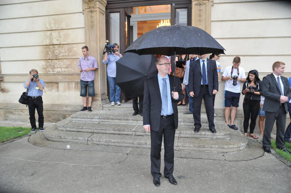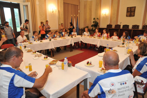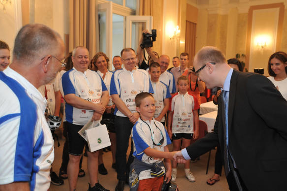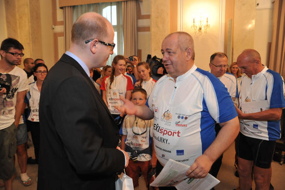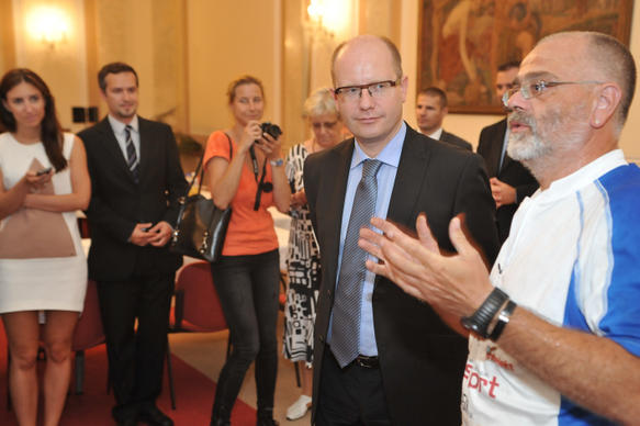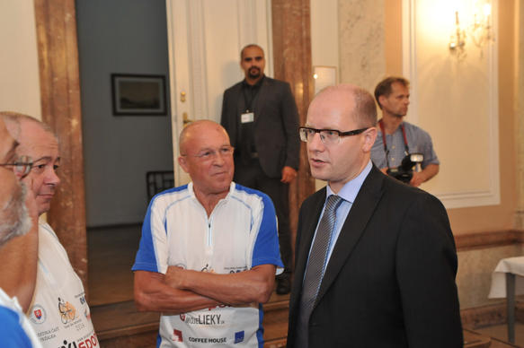 Předseda vlády ČR Bohuslav Sobotka přivítal 30. července 2014 v zahradě Strakovy akademie slovenské děti, které přijely z Bratislavy na kolech, aby předaly českému premiérovi poselství od předsedy slovenské vlády Roberta Fica.