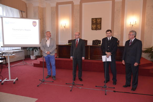 Premiér Sobotka společně s ministrem vnitra Chovancem poděkovali členům hasičského záchranného sboru a lékařům a zdravotním sestrám z Fakultní nemocnice Brno za jejich profesionální práci, kterou traumatým v Nepálu odvedl během čtyř týdnů po ničivé vlně zemětřesení.