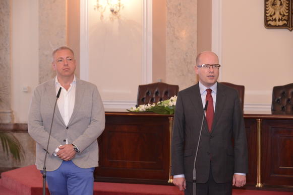 Předseda vlády Bohuslav Sobotka a ministr vnitra Milan Chovanec se v úterý 9. června 2015 setkali ve Strakově akademii, sídle vlády České republiky, s členy českého speciálního traumatýmu, který vláda vyslala na pomoc zemětřesením postiženému Nepálu.