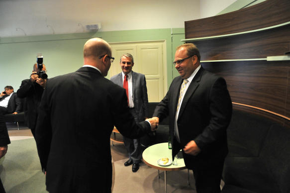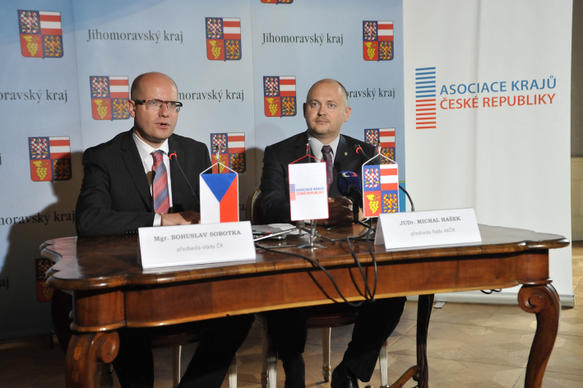 Následně předseda české vlády jednal se zástupci Asociace krajů ČR v Židlochovicích. Společně diskutovali o opravách silnic druhých a třetích tříd, které patří pod správu krajů. Dalším tématem jednání byla příprava na čerpání finančních prostředků z Evropské unie a vzájemná spolupráce mezi kraji a Ministerstvem pro místní rozvoj. Premiér Bohuslav Sobotka také s hejtmany hovořil o sociálních službách a jejich financování. Vláda vnímá AKČR jako významného partnera a pravidelně chce se zástupci krajů diskutovat o aktuálních tématech. Dnes premiér jednal s hejtmany za dobu svého mandátu již po třetí. Další společné jednání se uskuteční v pondělí 15. září 2014 ve Strakově akademii.