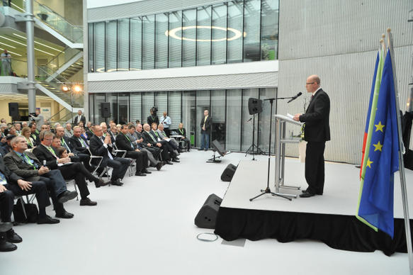 Premiér Bohuslav Sobotka zahájil pracovní den v Jihomoravském kraji otevřením Středoevropského technologického institutu v Univerzitním kampusu Masarykovy univerzity v Brně. Nové výzkumné pracoviště, jehož náklady se vyšplhaly na 5,25 miliardy korun, bylo financováno z fondů Evropské unie a státního rozpočtu. Vybudovaný vědecký komplex posílí výzkumný, vývojový a inovační potenciál ČR a přispěje k růstu konkurenceschopnosti a k vytváření vysoce kvalifikovaných pracovních míst v Jihomoravském kraji.