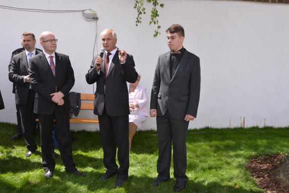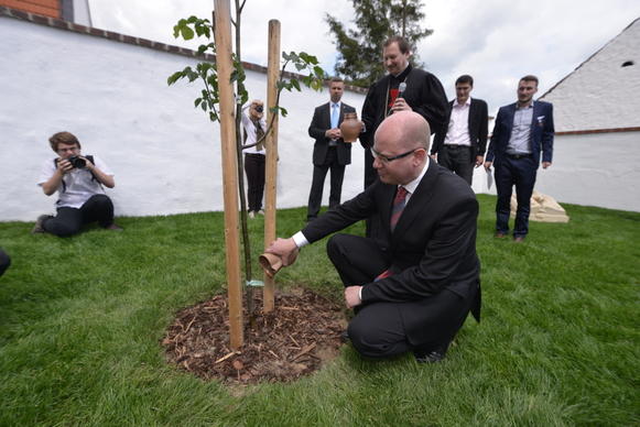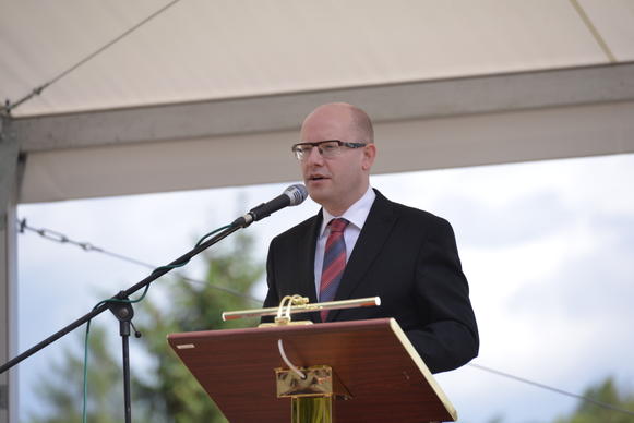 Na zahradě Husova domu premiér spolu s patriarchou Církve československé husitské Tomášem Buttou slavnostně odhalil plastiky projektu Mistr Jan Hus – cesta ke smíření. Plastikám také udělil záštitu.
