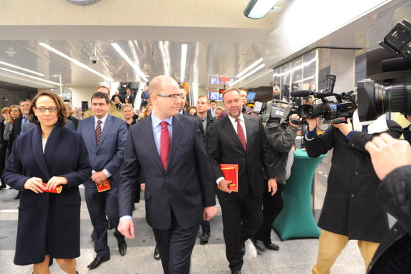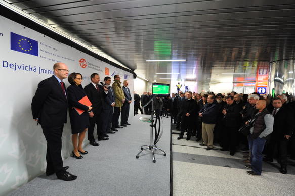 Premiér Sobotka se zúčastnil otevření nové stanice metra A