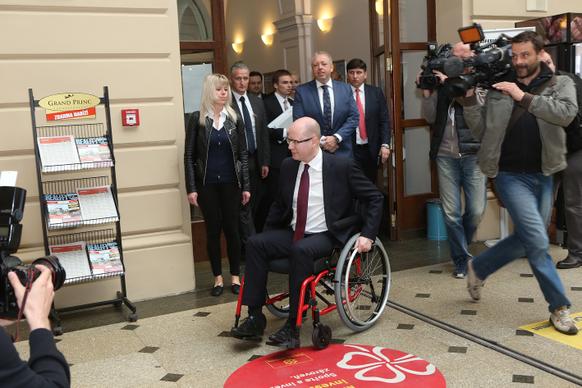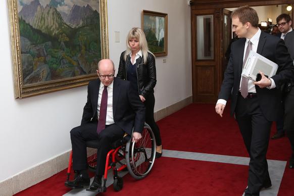 Premiér Sobotka si vyzkoušel pracovní den na invalidním vozíku