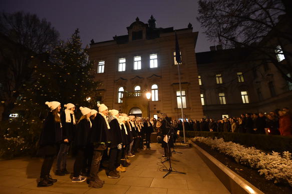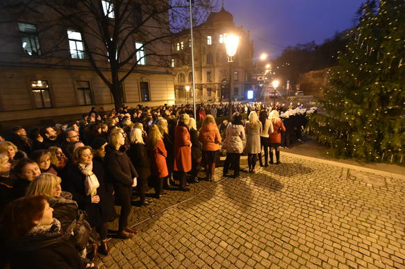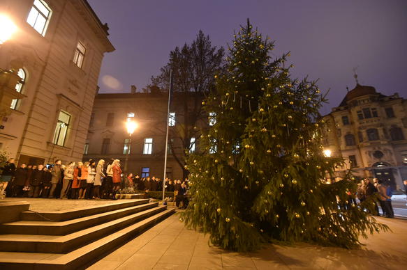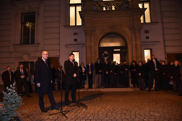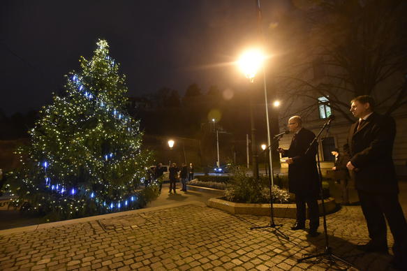 Premiér Sobotka spolu se zaměstnanci Úřadu vlády rozsvítili vánoční strom
