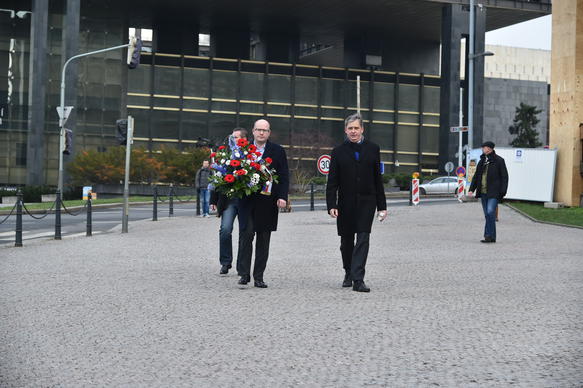Předseda vlády Bohuslav Sobotka společně s ministrem pro lidská práva a rovné příležitosti Jiřím Dienstbierem uctili v sobotu 16. ledna 2016 u pomníku před Národním muzeem na Václavském náměstí v Praze památku Jana Palacha.