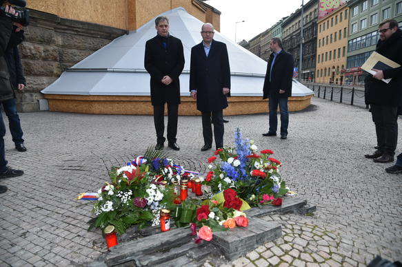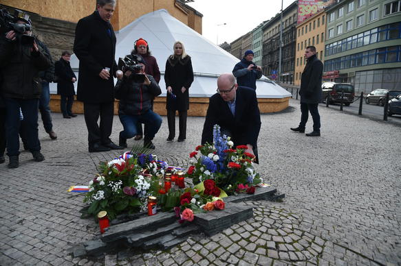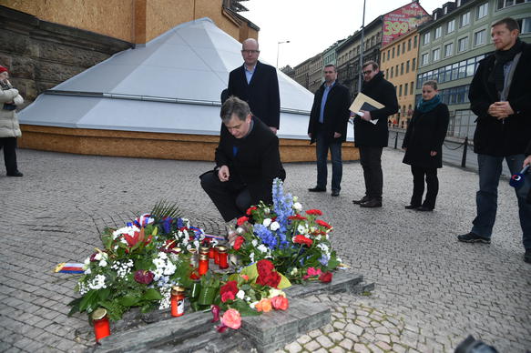 Premiér Sobotka uctil společně s ministrem Dienstbierem památku Jana Palacha