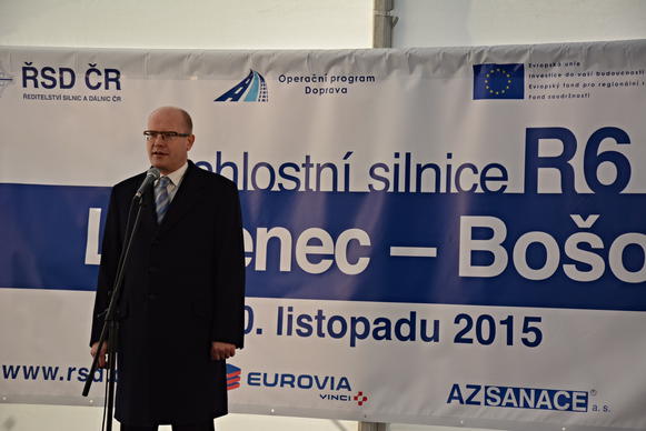 Předseda vlády Bohuslav Sobotka se v úterý 10. listopadu 2015 zúčastnil slavnostního zprovoznění rychlostní silnice R6 v úseku Lubenec – Bošov. R6 je jedna z klíčových dopravních tepen pro Karlovarský kraj. Vláda B. Sobotky přispěla k rychlejší realizaci stavby např. novelou zákona o urychlení výstavby dopravní, vodní a energetické infrastruktury, která umožňuje vyšší výkupní ceny pozemků a usnadňuje realizace dopravních staveb. Výstavba dalších tří úseků rychlostní silnice R6 se chystá na roky 2016 a 2017.