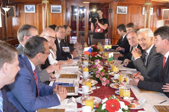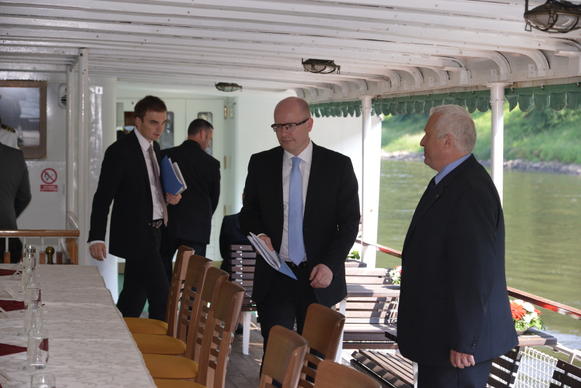 Program pokračoval plavbou lodí z Děčína do německého Bad Schandau. Premiér Sobotka s ministrem Ťokem jednal přímo na parníku s ministerskými předsedy Tillichem a Haselhofem o česko-saské přeshraniční spolupráci, projektu vysokorychlostní železnice mezi Prahou a Drážďanami, splavnosti Labe, vzdělávání a příležitostech pro spolupráci v oblasti vědy a výzkumu.