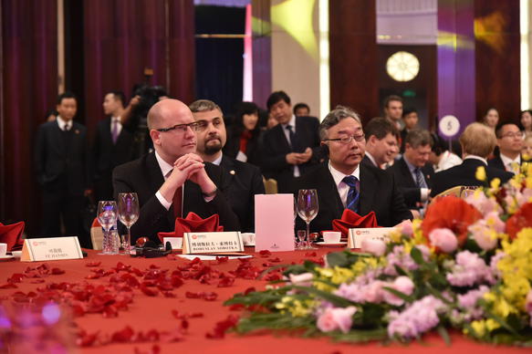 Těší mne, že vynikající politické vztahy se synergicky doplňují se vzájemnými vztahy vás, podnikatelů. V uplynulých měsících jsme v České republice přivítali řadu nových čínských investorů a věřím, že řada nových kontraktů vznikne i zde během naší návštěvy.
