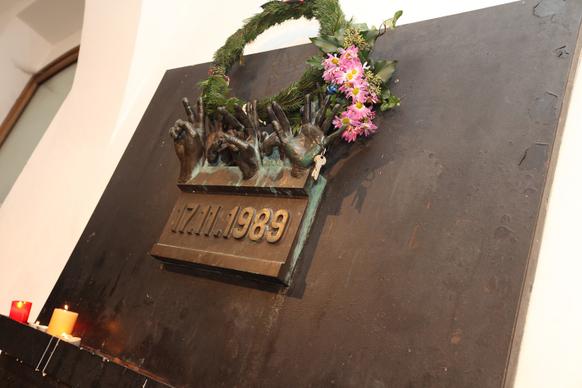 Předseda vlády následně zamířil na Národní třídu, kde položil kytici k pamětní desce 17. listopadu 1989.