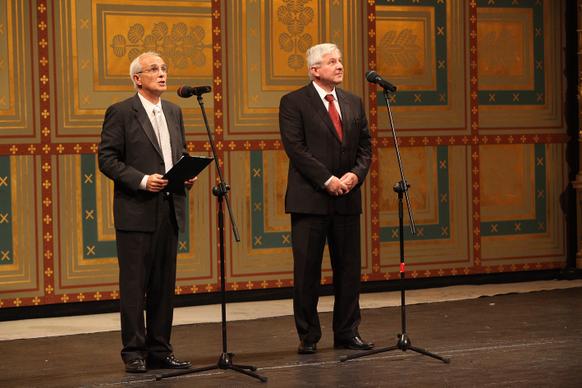 Předseda vlády Jiří Rusnok dnes při příležitosti zahájení divadelní sezóny uvedl do funkce nového ředitele Národního divadla Jana Buriana.