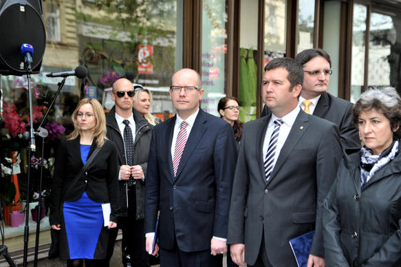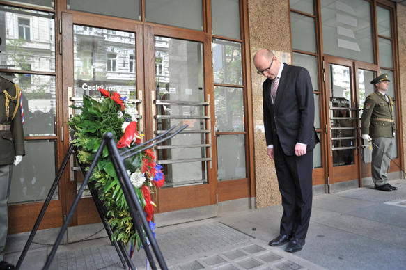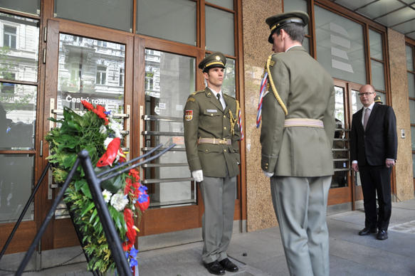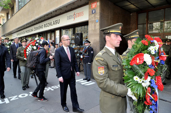 Předseda vlády Bohuslav Sobotka se v pondělí 5. května 2014 zúčastnil pietního aktu u příležitosti 69. výročí Květnového povstání českého lidu a konce druhé světové války před budovou Českého rozhlasu.